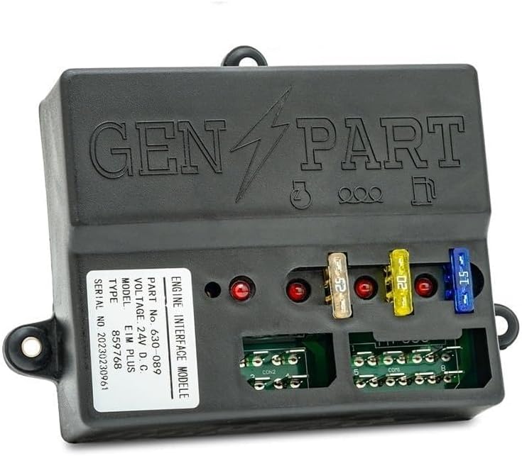 Electronic Speed GovernorsThe Engine Interface Module is a sealed, engine mounted module that provides switching relays for the Starter Motor Solenoid, Glow and Fuel Solenoid. Each of these circuits is protected with individual fuses mounted in the module. Individual LED's illuminate when each circuit is energised.There are two versions of the Engine Interface Module available: EIM Basic: The ElM is utilised in conjunction with control panels equipped with overspeed shutdown.EIM Plus: The ElIM plus is used in conjunction with control panels not equipped with overspeed shutdown.Overspeed Signal (EIM Plus only) The ElM Plus monitors the speed signal from the magnetic pick-up. If the engine speed rises above a certain pre-setable value, the module sends a zero volt signal to the generator set control panel to activate the Overspeed Fault circuitry.The Overspeed Set Point is set at 55 Hz for 50 Hz sets and 66 Hz for 60 Hz sets. This can be adjusted using the adjustment screw accessed through the hole beside the Overspeed Set-up LED. While the engine is running at the rated speed (1500 rpm for 50 Hz or 1800rpm for 60 Hz) the adjustment screw should be adjusted until the Overspeed Set-up LED just goes out. This sets the overspeed value at 10% above the speed at which the generator set is operating.